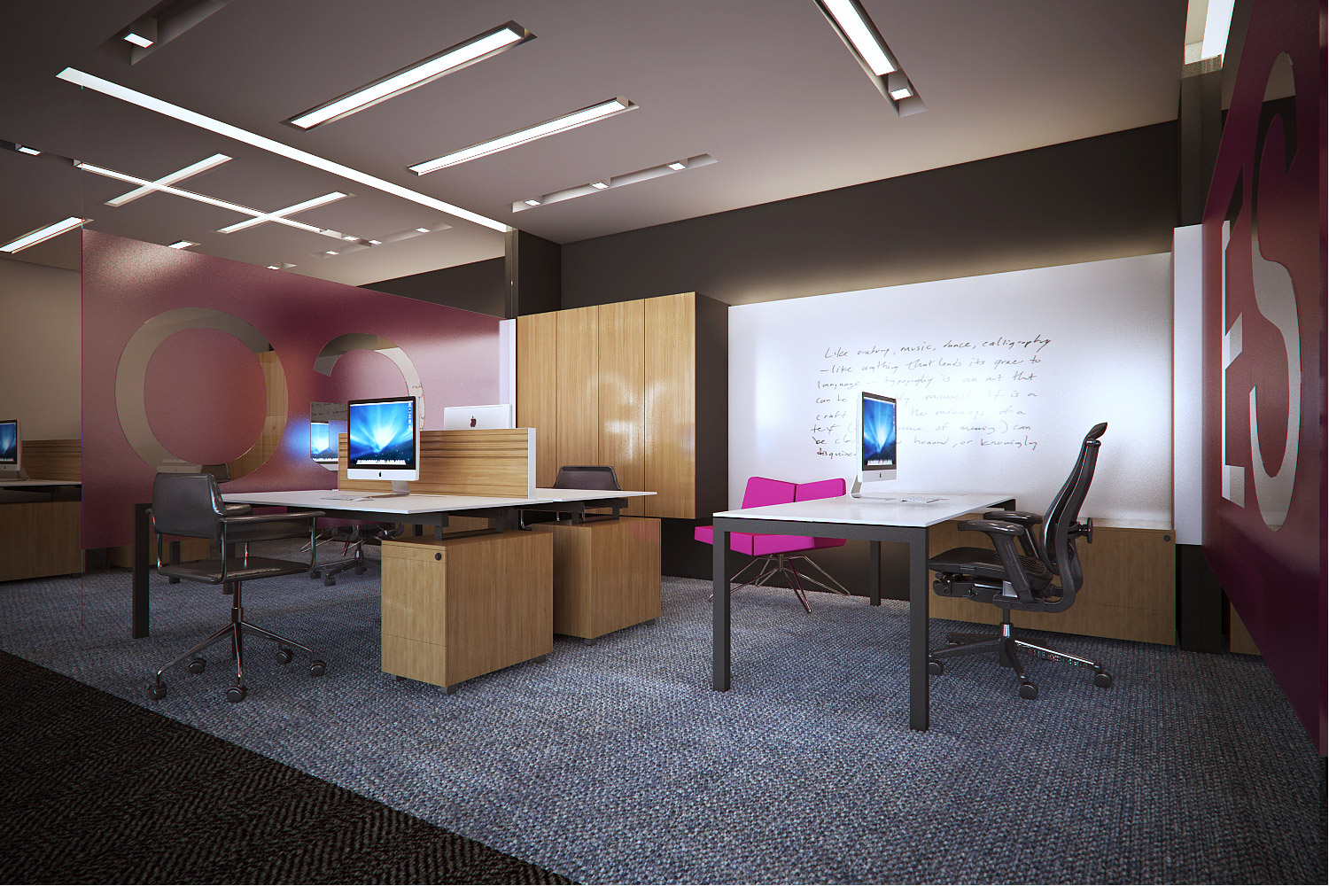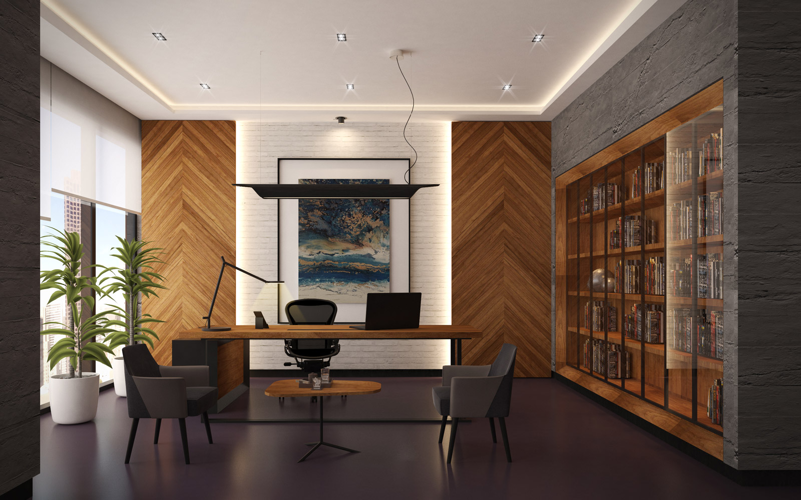 Yönetici odalarında pastel ve koyu tonlar tercih edildi. Yağ yeşili kadife koltuklar, dark emperador mermer masalar, acı kahve zemin kaplaması, koyu ceviz mobilyalar… Kullanıcının ilgi alanları ve hobileri doğrultusunda, duvarlarda dekoratif tablo ve fotoğraflar kullanılırken, bu objelerin özel olarak aydınlatılması için özen gösterildi.