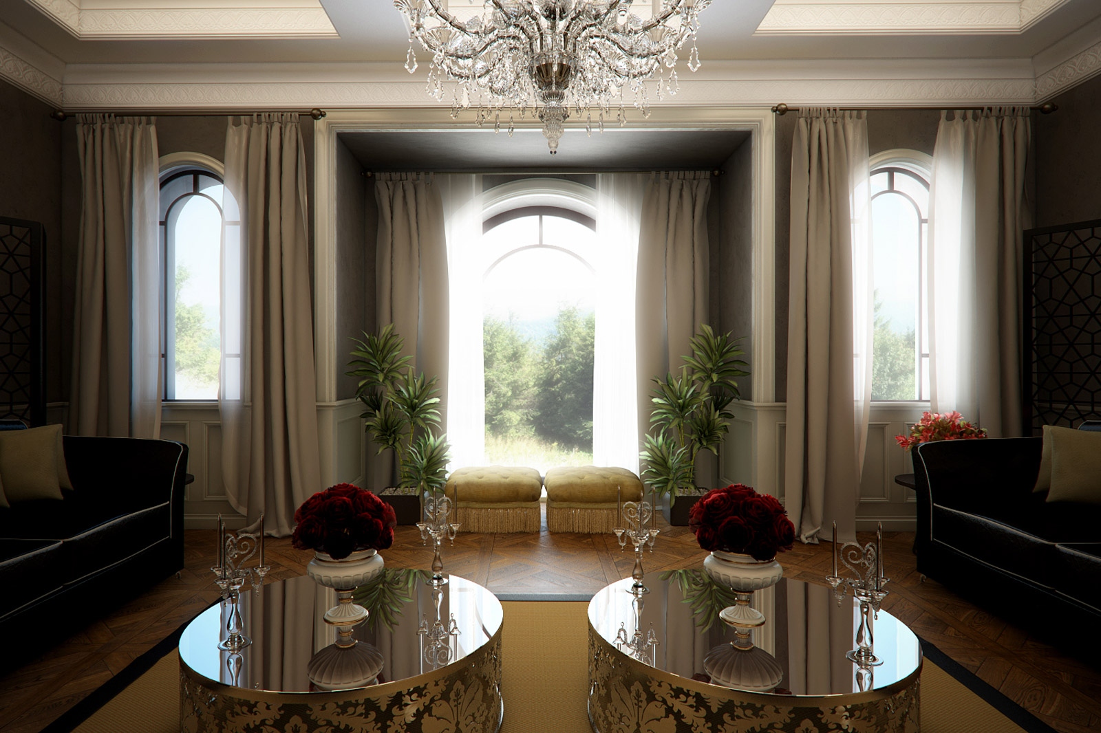 Bağımsız bir girişi bulunan özel konuk ağırlama salonunda daha klasik bir tarz benimsendi. Yüksek tavanların kaset döşemeleri, el oyması ahşap profillerle kaplanırken, zeminde Fransız bir göbekli parke tercih edildi. Fendi, Ralph Lauren gibi dünyaca ünlü markalardan seçilen mobilyaların yanı sıra, Los Angeles’da el işçiliğiyle üretilen özel parçalar mekânı zenginleştiren öğeler oldu.