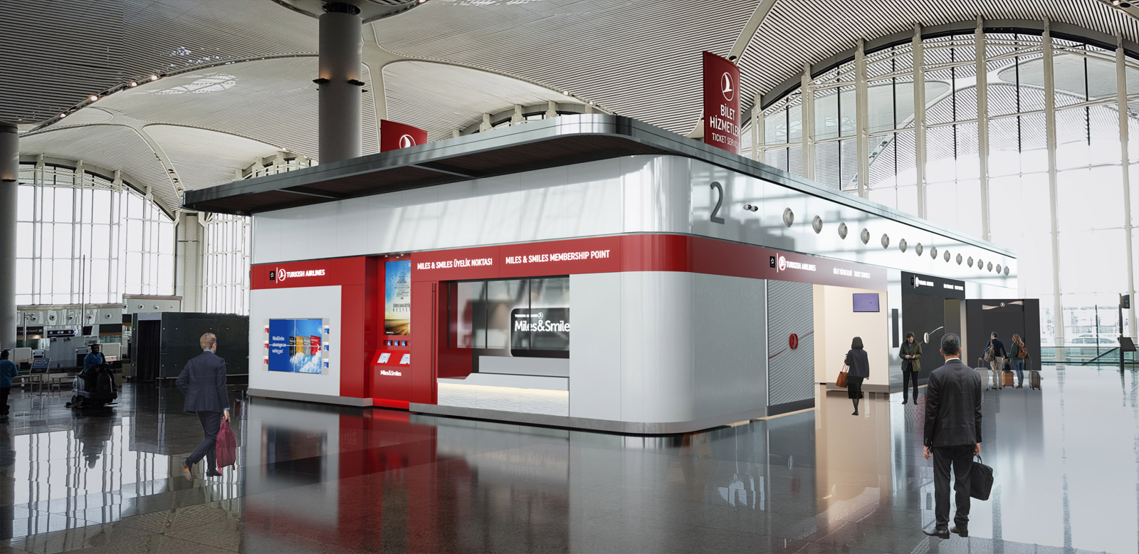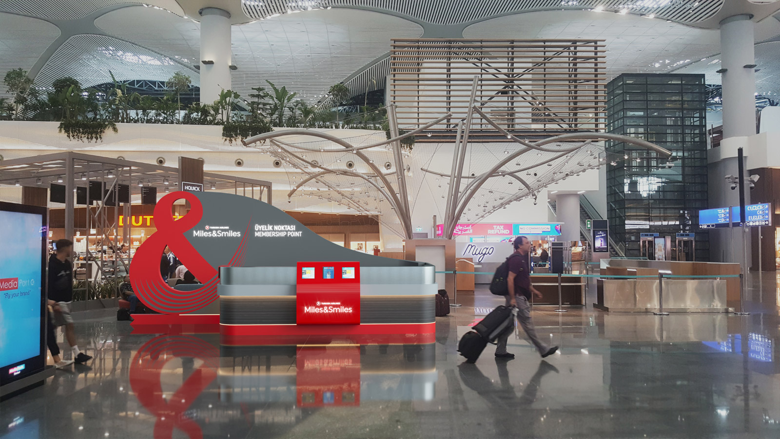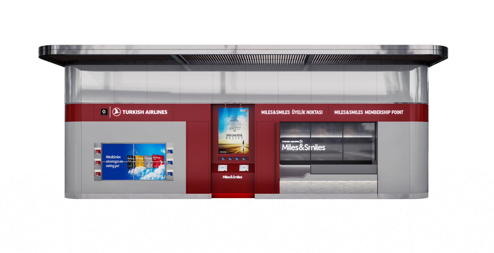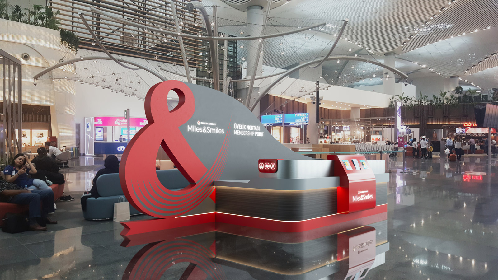 Üyelik işlemleri başta olmak üzere birçok hizmetin sunulduğu Miles&Smiles programı, yolcularına hem merkezi bir ofisle hem de terminal içinde farklı alanlara dağıtılmış kiosklarla hizmet verdiği için tasarımın genel çizgisi birkaç “farklı” yorumla oluşturuldu. Terminal içindeki “yoğun algı” trafiğinde seçilebilir olma kaygısıyla kiosklar daha “dikkat çekici” ve “pop” bir fikirle tasarlanırken, merkez ofis tasarımında daha yalın ve bütüncül bir dil tercih edildi.